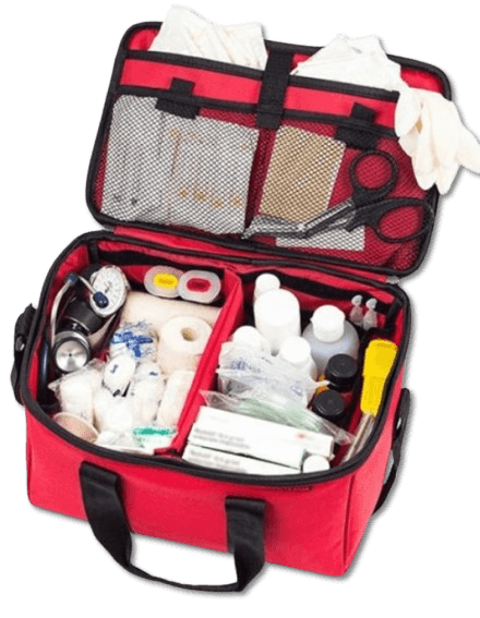 Κάθε ομάδα που κάνει δράσεις στη φύση παίρνει μαζί της ένα οργανωμένο και σωστά εξοπλισμένο φαρμακείο για την παροχή Α΄ Βοηθειών. Το φαρμακείο που παίρνουμε μαζί μας στις δράσεις πρέπει να είναι σε κατάλληλη τσάντα ή σακίδιο για να μπορεί να μεταφέρεται εύκολα και να έχει κατάλληλο χρώμα και σήμανση για να αναγνωρίζεται άμεσα.